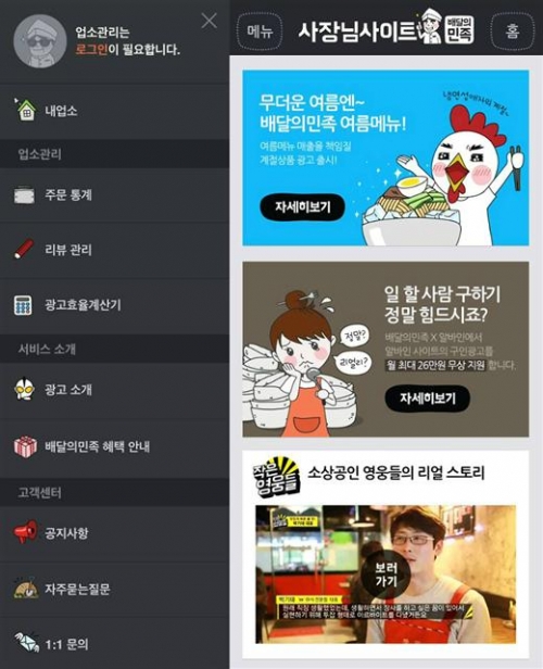 배달앱 ‘배달의민족’을 서비스하는 우아한형제들은 업주들이 더욱 편리하고 효과적으로 배달의민족을 이용할 수 있도록 돕는 ‘모바일 사장님사이트’를 오픈한다고 27일 밝혔다.