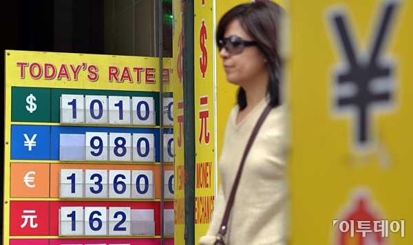 원·달러 환율의 하락세가 이어지며 외환당국의 저지선으로 알려진 달러당 1,020원 선이 무너지기 직전이다. 8일 오전 서울 중구 명동의 한 환전소에 달러당 1,010원의 시세를 나타내고 있다. 한편, 지난 5일 서울 외환시장에서 원화는 전 거래일 종가보다 2.6원 내린 달러당 1,020.5원에 거래를 마쳤다. 최유진 기자 strongman55@