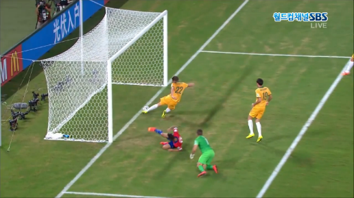 호주 축구국가대표팀의 알렉스 윌킨슨(전북 현대)이 결정적인 실점 위기에서 팀을 구해냈다.