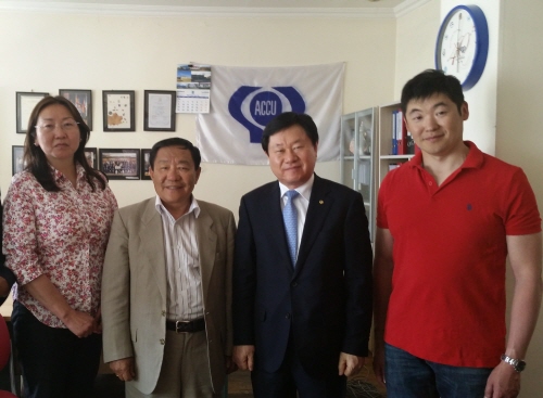 문철상 신협중앙회장은 14일 몽골신협연합회(MOCCU)를 방문, 구큐(Gookhuu) 몽고신협연합회장을 비롯해 몽골 신협 관계자들과 경영진 미팅을 가졌다.