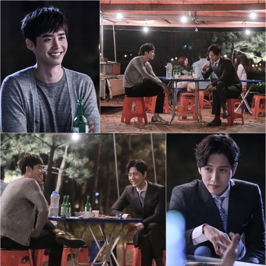 공개된 사진 속 이종석과 박해진이 포장마차에 앉아 술을 마시며 이야기를 나누고 있다. 두 사람은 우월한 기럭지와 훤칠한 외모를 과시하며, 보는 사람을 은혜롭게 만드는 투샷으로 황홀함을 선사하고 있다. 이종석은 가디건과 운동화로, 박해진은 정장과 구두로 너무도 다른 스타일임에도 불구하고, 묘하게 어울리는 두 사람의 모습이 눈길을 끌고 있는 것.