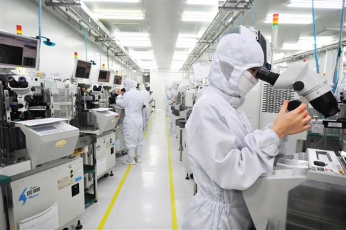 ▲바른전자 연구원들이 경기도 화성 공장에서 반도체를 검사하고 있다. (사진=바른전자)