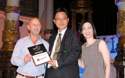 ▲LG유플러스는 네덜란드 암스테르담에서 열린 ‘2014 LTE 월드 서밋’ 행사에서 LTE 최고 발전상을 수상했다고 25일 밝혔다