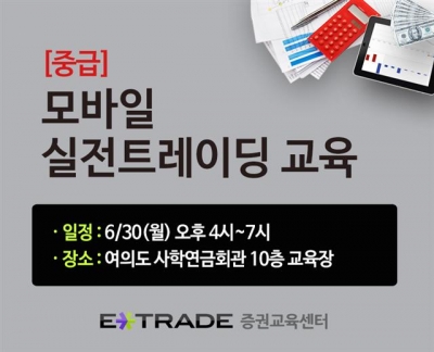 이트레이드증권은 오는 30일 여의도 사학연금회관(10층) 교육장에서 모바일 실전 트레이딩 교육을 실시한다고 25일 밝혔다.