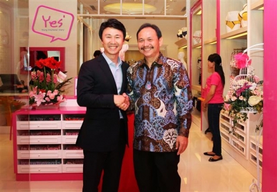인도네시아 ‘예스 1호점’은 허니플라워그룹과 협력해 자카르타 내 최대규모 쇼핑몰인 ‘타만 앙그렉(Taman Anggrek)’에 15평 규모의 단독 매장으로 입점했다. 자카르타 매장을 인도네시아 내 사업 확대를 위한 교두보로 삼고, 허니플라워그룹과 함께 백화점 및 쇼핑몰 위주의 영업을 전개해 프리미엄 브랜드로 확고히 자리매김한다는 목표다.