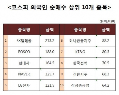 [코스피 외국인 순매수 상위 10개 종목]