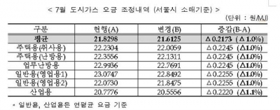 특히 도시가스요금은 개별소비세 인하로 원료비 인하효과가 발생함에 따라 개별소비세 인하분만큼 원료비를 조정하는 동시에, 지난해 미수금 정산분 등을 반영하여 7.1일부터 1.0% 인하(서울시 소매요금 기준)될 예정이다.
