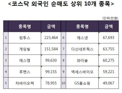 [코스닥 외국인 순매도 상위 10개 종목]