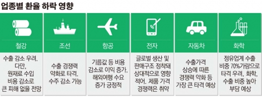 정유 업계 한 관계자는 “환율 하락으로 가장 걱정되는 부문은 수출 단가 하락”이라며 “환율이 계속 하락할 경우 수익에 안좋은 영향을 미칠 수밖에 없다”고 토로했다. 석유화학 업계 관계자 역시 “현재로써는 상황을 지켜보는 수밖에 뾰족한 대책이 없다”고 전했다.