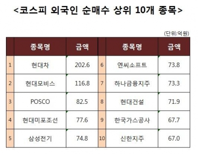 [코스피 외국인 순매수 상위 10개 종목]