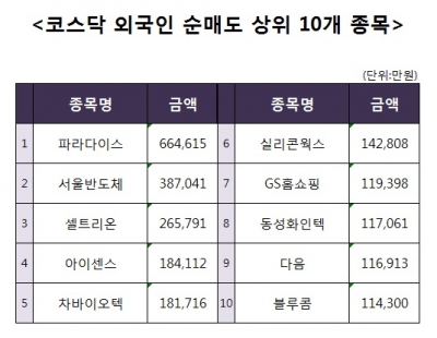 [코스닥 외국인 순매도 상위 10개 종목]
