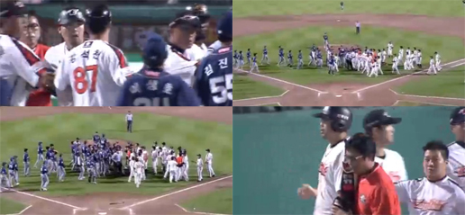 이어 덕아웃에 있던 양 팀 선수들이 모두 그라운드로 뛰어나오며 벤치클리어링이 발생했다. 경기장으로 나온 선수들은 서로를 진정시키며 벤치클리어링은 마무리됐다.