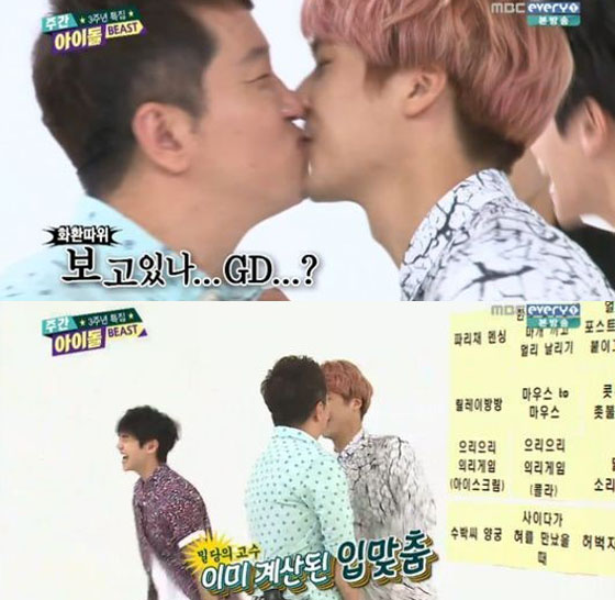 정형돈의 끈질긴 요구에 결국 비스트는 정형돈 볼에 뽀뽀를 했다. 이어 손동운이 볼에 뽀뽀를 하려 하자 정형돈은 얼굴을 돌려 손동운과 기습 뽀뽀를 했다. 충격에 빠진 손동운은 얼굴을 감싼 채 괴로워했고 데프콘은 “니 입술을 훔친 첫 번째 MC야”라고 말했다.