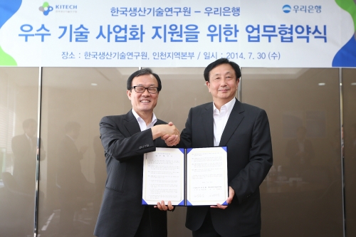 우리은행은 30일 한국생산기술연구원(이하 생기원)과 우수기술 사업 지원을 위한 업무협약을 체결했다고 31일 밝혔다.