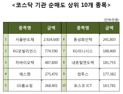 [코스닥 기관 순매도 상위 10개 종목]
