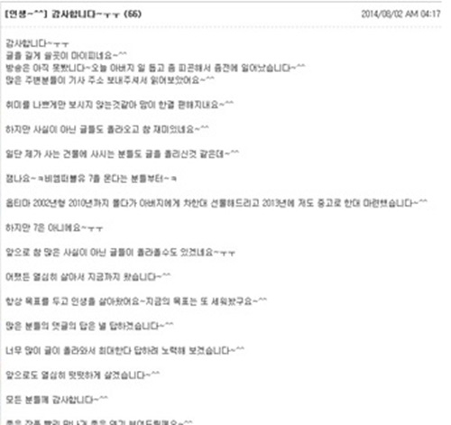 심형탁은 2일 오전 자신의 블로그에 "감사합니다"라는 제목으로 장문의 글을 올렸다.