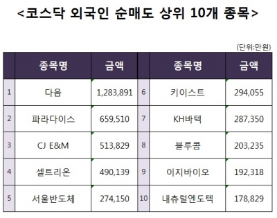 [코스닥 외국인 순매도 상위 10개 종목]