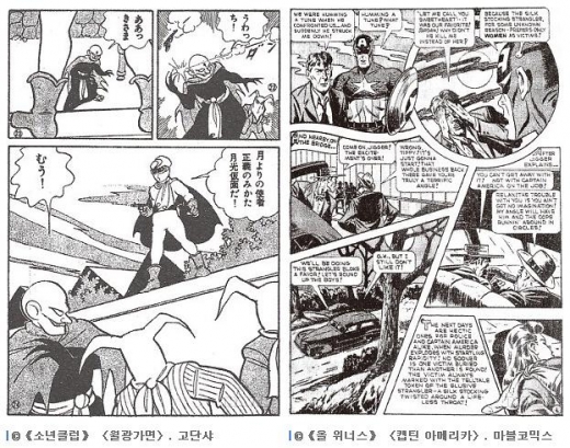 ▲왼쪽의 일본 만화와 오른쪽의 미국 만화(사진=네이버 캡처)