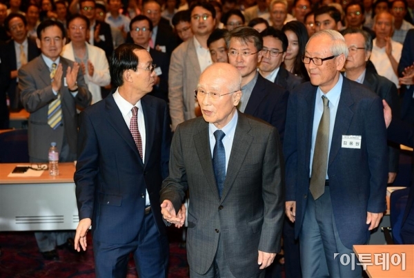 김우중 전 대우그룹 회장이 26일 오후 여의도 중소기업중앙회에서 열린 제45회 대우특별포럼 ?김우중과의 대화‘에 참석하고 있다. 노진환 기자 myfixer@