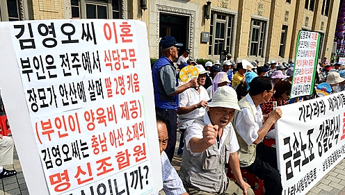 25일 서울 광화문 KT 앞에서 어버이연합을 비롯한 보수단체가 기자회견을 열고 김영오 씨에게 진실을 말하라고 요구했다.