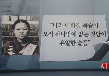 유관순 열사는 17살이었던 1919년인 아우내장터에서 3000여 군중에게 태극기를 나누어 주며 시위를 지휘하다 일본 헌병대에 체포됐다. 특히 유관순 열사는 옥중에서도 일제에 굽히지 않다 고문으로 인해 방광파열로 옥사했다.