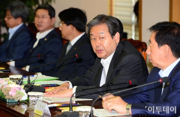 김무성 새누리당 대표가 2일 마포구 대흥동 한국경총회관에서 열린 노사관계 개선과 경제 살리기, 일자리 창출을 위한 경총 회장단 간담회에서 모두발언을 하고 있다. 노진환 기자 myfixer@