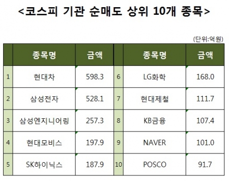 [코스피 기관 순매도 상위 10개 종목]