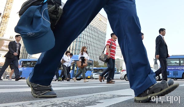 대체휴일로 길었던 추석연휴가 끝난 11일 오전 서울 광화문 네거리에서 시민들이 출근길을 서두르고 있다. strongman55@