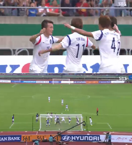 이로써 한국 대표팀은 임창우의 선제 헤딩골에 힘입어 전반전 현재 1-0으로 앞서 있다.