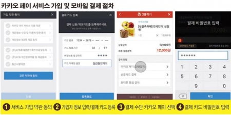 가입절차 또한 간단하다. 카카오톡 사용자는 모바일 쇼핑몰에서 결제수단으로 카카오페이 선택 시 스마트폰에 뜨는 가입창 또는, 카카오톡 실행 후 ‘더보기, 설정, 카카오페이’ 메뉴를 선택해 약관동의와 휴대폰 본인 인증 후 최소 6자리에서 최대 12자리의 숫자로 된 결제 비밀번호만 등록하면 된다.