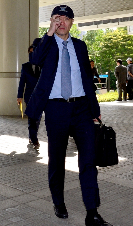 조세포탈 혐의로 1심에서 집행유예를 선고받은 전두환 전 대통령의 차남 전재용 씨가 16일 오후 서울 서초구 서울고등법원에서 열린 항소심 4차 공판에 참석하기 위해 들어서고 있다.