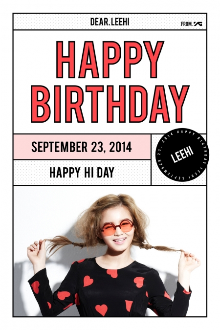 23일 0시 YG 공식 블로그(yg-life.com)에는 ‘HAPPY BIRTHDAY LEE HI’라는 타이틀로 이하이의 생일을 축하하는 이미지가 게재됐다.