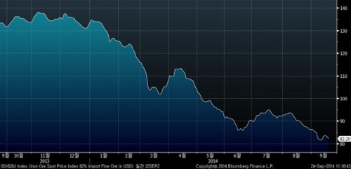 글로벌 철광석 가격이 올 들어 41%나 빠져 5년래 최저치를 기록하는 등 끝없이 추락하고 있다.