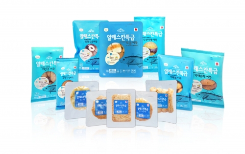 풀무원식품은 6일 알래스카에서 어획한 자연산 명태를 사용해 맛과 품질을 향상한 ‘알래스칸 특급’ 12종을 출시했다. 불에 구워 담백하고쫄깃한 ‘직화 구운어묵’과 우엉과 당근 등을 넣은 ‘우엉 사각어묵’ ‘두부야채 어묵’ 등 다양한 맛으로 나와 소비자 취향과 용도에 따라 고르기 좋다.