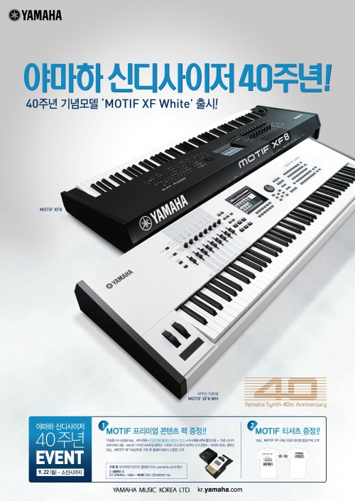 야마하뮤직코리아는 첫 신디사이저 출시 40주년을 기념하기 위해 ‘MOTIF XF8 White’를 출시하고 구매 고객에서 사은품을 증정하는 이벤트를 실시한다고 7일 밝혔다.