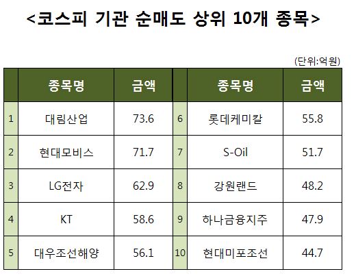 [코스피 기관 순매도 상위 10개 종목]