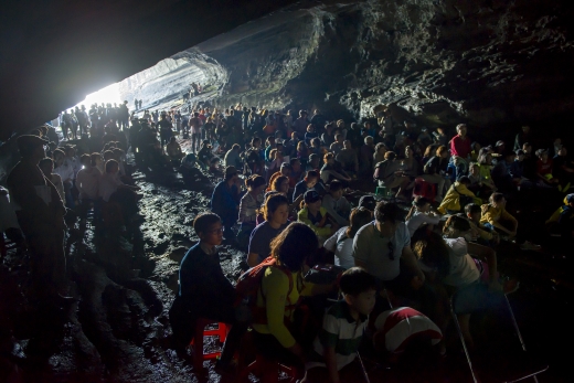 9일 오후 제주도의 부속 섬인 우도 '고래굴'에서 시민과 관광객들이 이색적인 동굴음악회를 즐기고 있다.