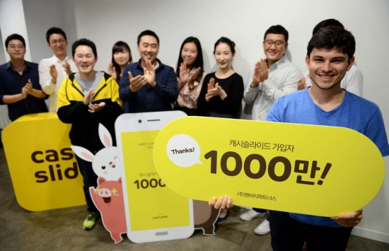 캐시슬라이드는 스마트폰 잠금화면에 보상 혜택, 생활정보 등이 제공되는 '첫 화면 플랫폼'이다. 2012년 11월 서비스 개시 이후 1년 10개월여 만에 가입자 1000만명을 넘어섰다.