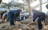 김정은, 딸 주애 태우고 직접 ‘지게차’ 운전…러 파병군 기념관서 식수