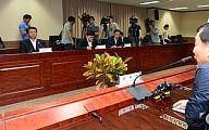 포토]류길재 통일부 장관 기다리는 개성공단기업대표들