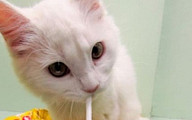 고양이 먹는 우유…빨대 꽂아 우유 원샷?