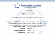 아이텍, 국제 RBA ‘골드’ 등급 획득…“글로벌 상위 1% ESG 경쟁력 입증”