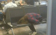 공항의자에서 자는 법...유연함이 돋보이네