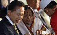 [포토] 李대통령에게 과자 권하는 印대통령