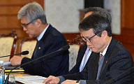 [포토]굳은표정으로 자료 살펴보는 권도엽 국토해양부 장관