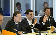 [포토] 유로존 긴급회의, 그리스 치프라스 총리 '혼자 밝게 웃네'