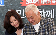김한길 대표, 천막당사서 '환갑' 맞아…부인 최명길도 아들과 방문