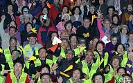[포토]노인사회활동지원사업 공동발대식 '희망의 종이비행기 날려요~'