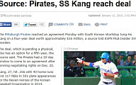 美언론 "강정호, 피츠버그 파이어리츠와 계약 합의"… 향후 4년간 약 174억원, 5년째는 옵션