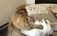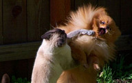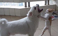 멱살 잡은 고양이 2탄 “고양이에게 멱살 잡힌 강아지…합성 아냐? 표정 리얼”